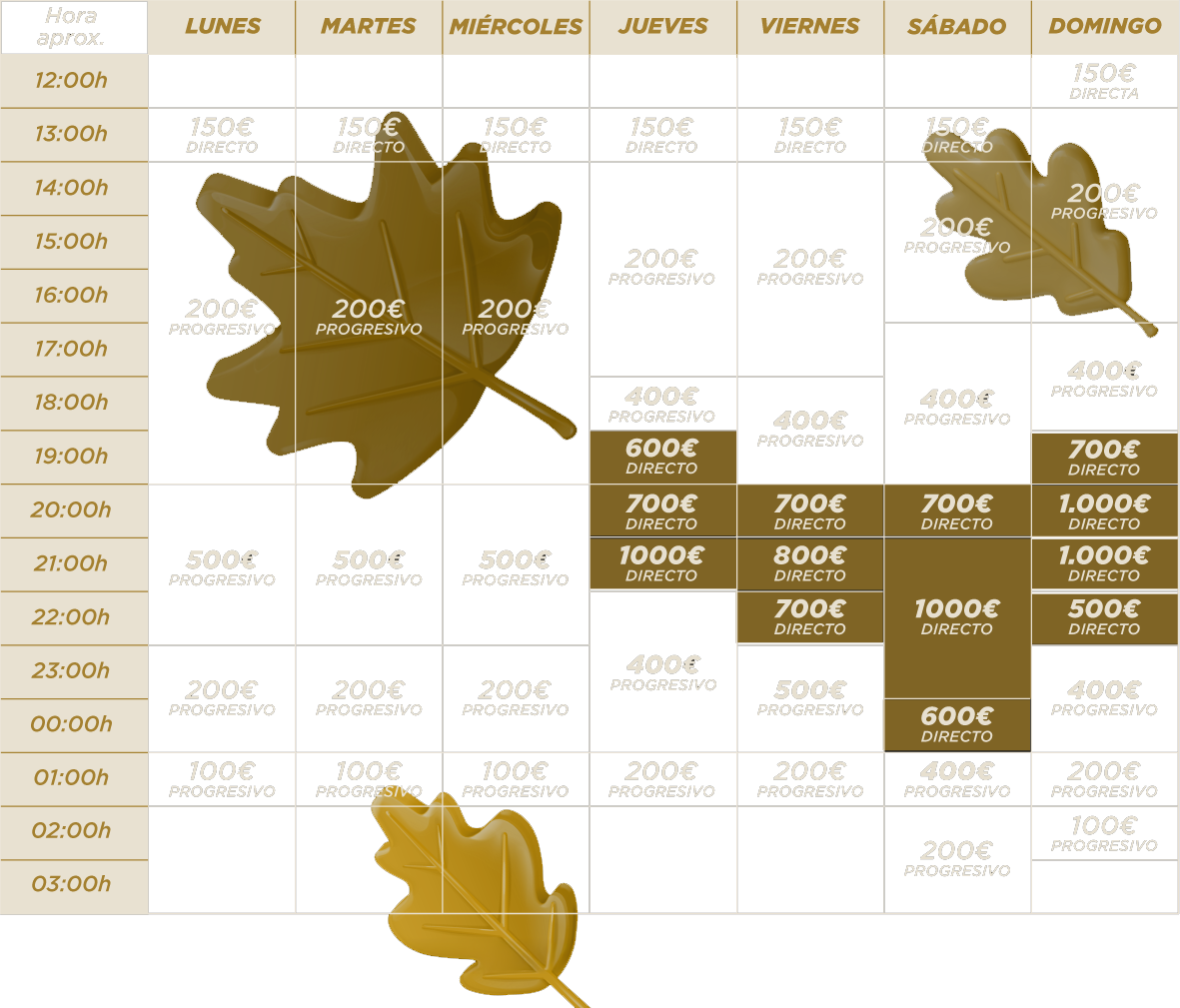 Plan de premios sujeto a reserva de prima, podrá conllevar cambio sin previo aviso.
